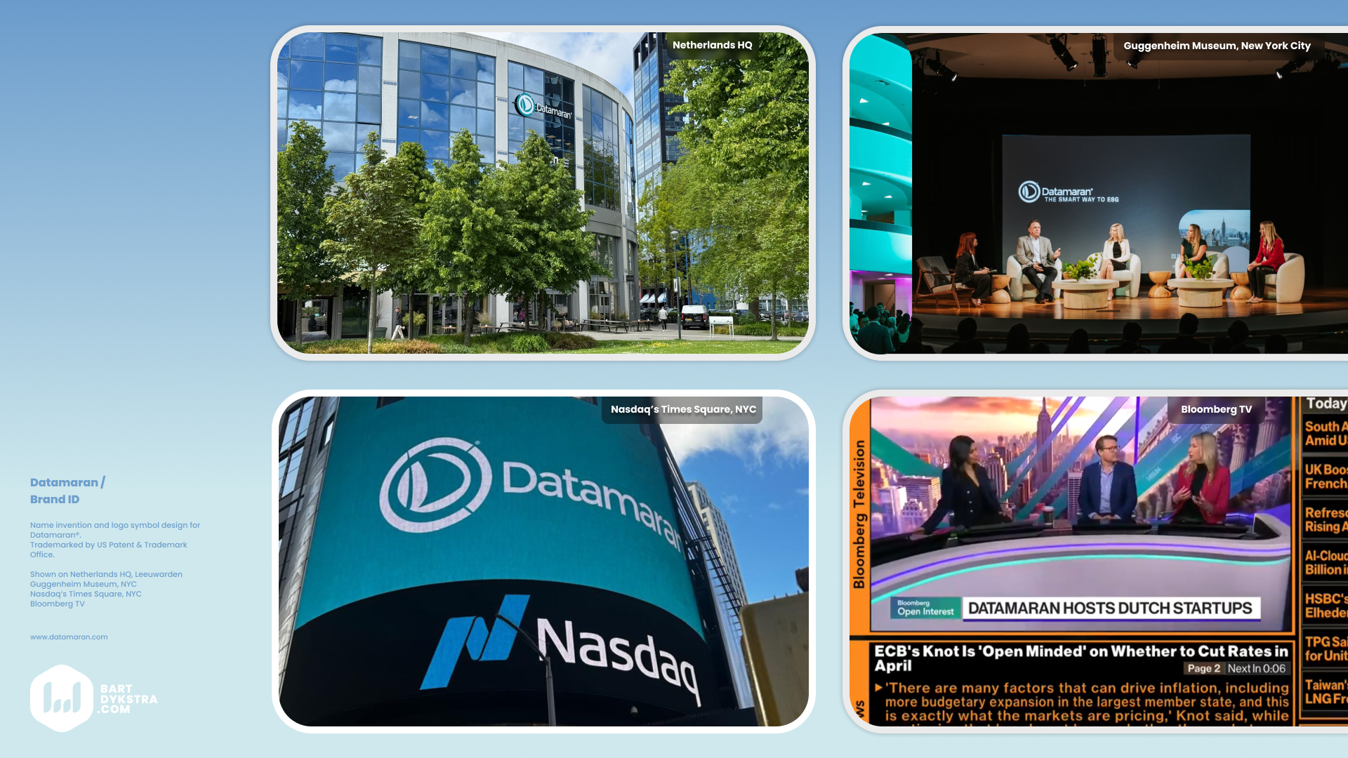 » Invented the Datamaran name, designed the trademarked logo, and built brand strategy and visual identity from zero — earning placement on Nasdaq and Guggenheim platforms and establishing the creative foundation that sustained the brand through Series A–C funding rounds.