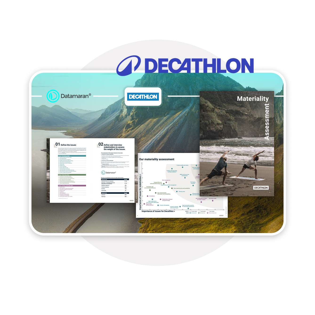 Decathlon publishing Datamaran logo and matrix visualisation in their Materiality Assessment report.