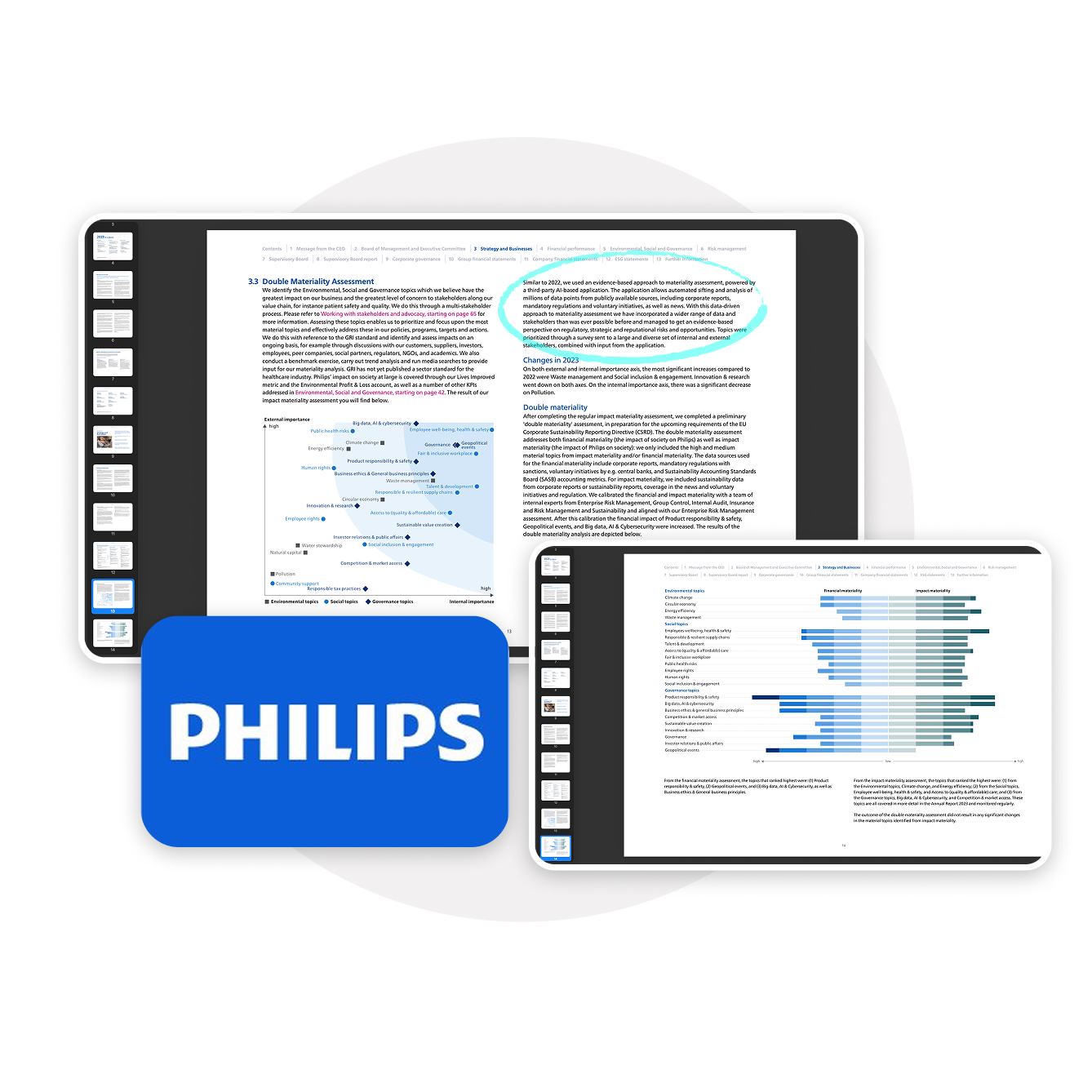 Philips’ Annual Report illustrating matrix and tornado charts.