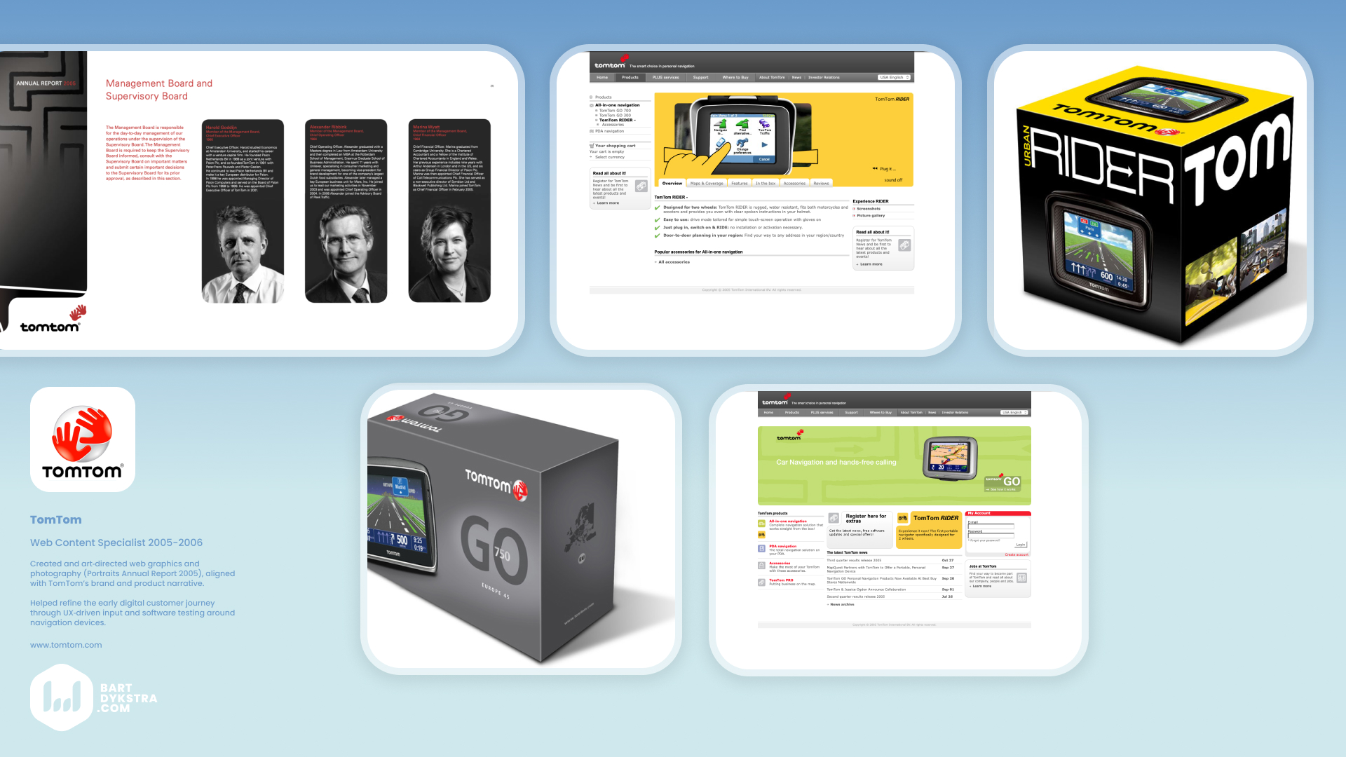 From UX testing, web content, and annual report 2005 board members portrait photography at navigation technology company TomTom…